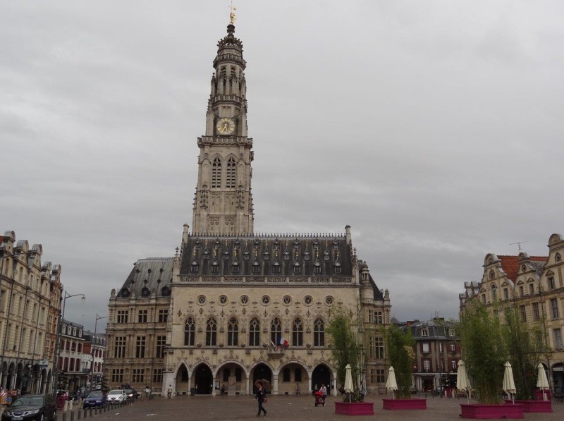 Notre journée se termine par la visite des places d’Arras. Ces deux places représentent un ensemble relié de 17.000 m² couvertes de pavés historiques afin d’accueillir dès le XIe des tournois, des foires, des parades militaires, des marchés aux grains. Les façades à pignon sont des XVIIe et XVIIIe ; il existe 155 maisons de ce style baroque flamand. L’ensemble fut détruit durant la guerre de 14-18 puis reconstruit dans le même esprit mais en pierre et brique alors qu’à l’origine le bois dominait.