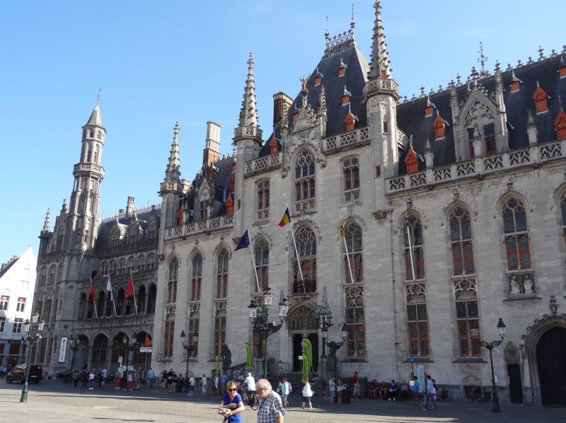 Nous admirons l’église Notre Dame érigée du XIIIe au XVe siècle, d’art gothique avec sa tour en briques de 122 m. de hauteur dont 54 m. de flèche ; puis nous passons devant l’Hospice saint Jean du XIIe siècle, la Basilique du Saint Sang située sur la Grand Place qui constitue le cœur historique depuis 958.