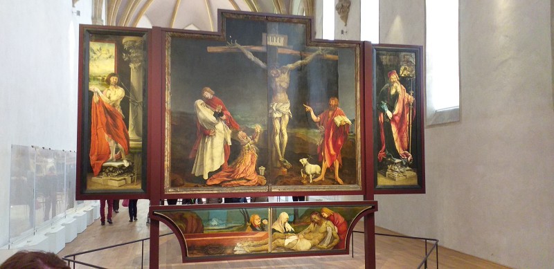 Le retable d’Issenheim (qui est aussi en cours de rénovation) se trouve dans la chapelle du musée. Ce retable a été réalisé entre 1512 et 1516 par les artistes Nicolas de Haguenau pour la partie sculptée et Grunewald pour les panneaux peints. Cette œuvre a été commandée pour la Commanderie des Antonins d’Issenheim qui est un petit village situé à une vingtaine de kilomètres de Colmar.